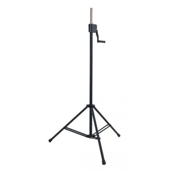 Stativo professionale per diffusori acustici, realizzato in acciaio tubolare e parti in alluminio pressofuso. Dotato di meccanismo di elevazione a cremagliera, in alluminio pressofuso, con freno meccanico per garantire la massima stabilità al carico e la facilità di montaggio. Altezza regolabile da un minimo di 1400 mm ad un massimo di 2200 mm. Tubo terminale con diametro 35 mm. Giunti dei gambi realizzati in alluminio pressofuso. Colore Nero opaco.